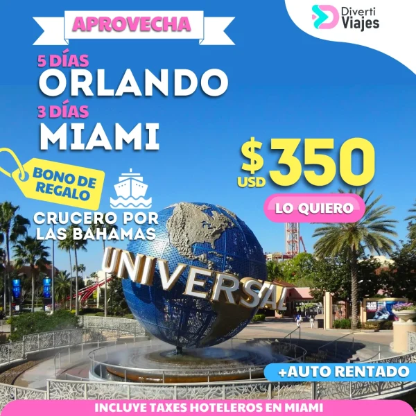 5 dias Orlando+3 días Miami + Bono Crucero
